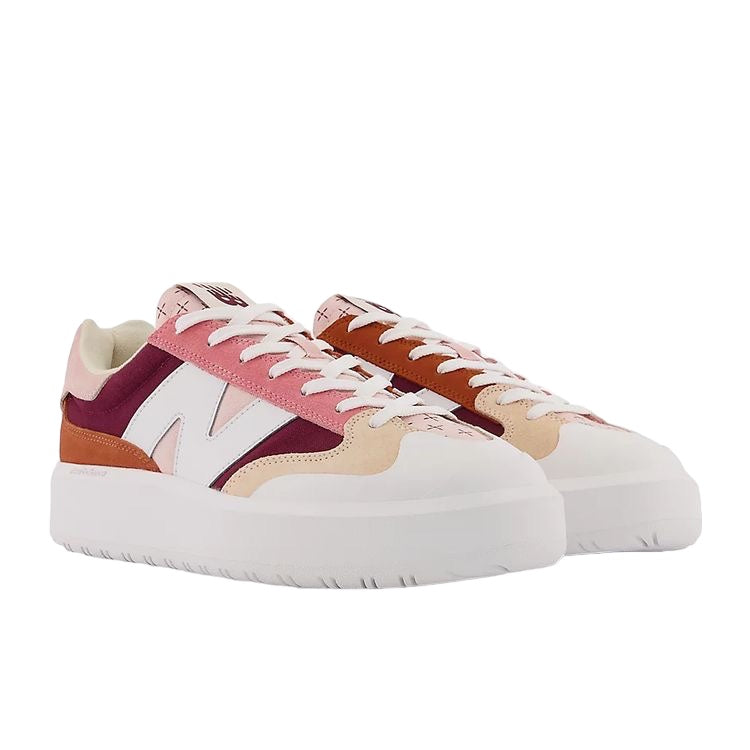 Thanks to its blend of performance qualities and understated, casual elegance, the classic tennis shoe is a timeless style fixture. The CT302 expands the everyday wearability of the classic court silhouette, with an infusion of exaggerated proportions and unexpected details. Using a 1980s on-court model, the CT300, as a launching point, the CT302 adds a stacked height midsole, an outsized take on the classic cup outsole design and ‘N’ logo, and a rubber toe wrap extending from the outsole, along with the use of curved and wavy lines throughout the design.